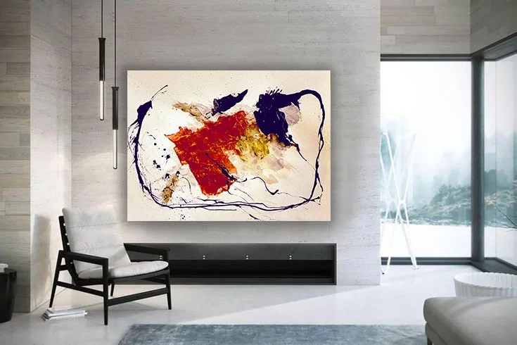 MOJAVE: Using handmade pigments from the Mojave region, this mixed media piece casts a glorious sunrise in the desert using limestone and marble dust for rich texture.